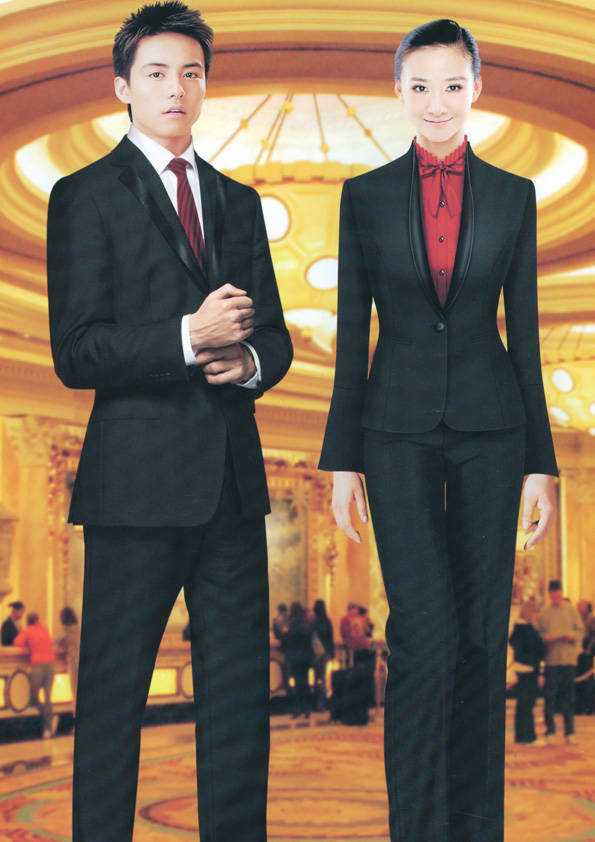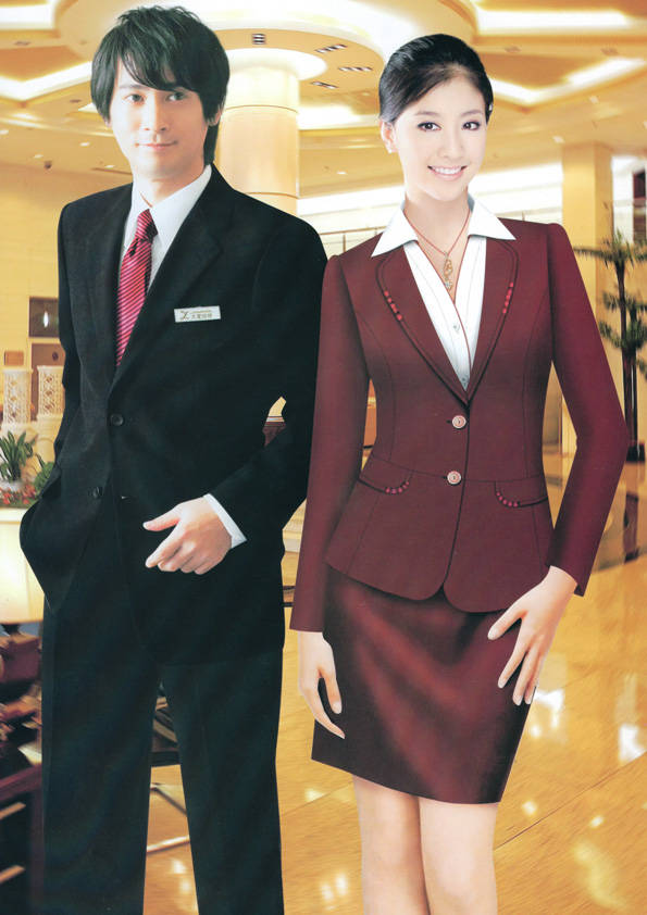 前廳部是酒店的神經(jīng)中樞也叫做前臺,在客人心目中它是酒店管理機構(gòu)的代表。客人入住登記在前廳、離店結(jié)算在前廳,客人遇到困難尋求幫助找前廳,客人感到不滿時投訴也找前廳。 前廳工作人員的言語舉止將會給客人留下深刻的第一印象,最初的印象極為重要。所以前廳服裝也極為重要。前廳服裝應(yīng)該注意以下幾個問題。1、服裝的色彩與酒店裝修相搭配。2、服裝的面料選定。3、服裝的款式一定要舒適,時尚大方。4、服裝的樣式與酒店風(fēng)格相搭配。5、服裝要成系列感。