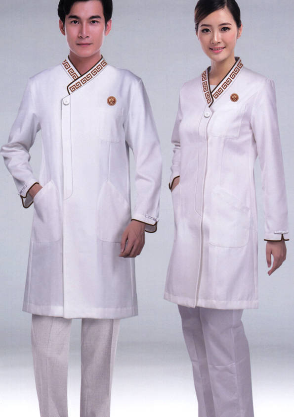 醫(yī)療美容服裝是屬于工作制服的一種,即是為工作而制定的衣服。根據(jù)實(shí)際的需求,結(jié)合使用特征、團(tuán)隊文化、年齡結(jié)構(gòu)、體型特征、穿著習(xí)慣等,從服裝的色彩、面料、款式、造型、搭配等多方面考慮。醫(yī)療美容行業(yè)工作服是與居民的日常消費(fèi)關(guān)系密切的行業(yè),他們的著裝要充分體現(xiàn)親切、自然、整潔的職業(yè)形象。該行業(yè)特點(diǎn)決定其應(yīng)以經(jīng)典時尚、簡潔適用的款式風(fēng)格為主,并富有內(nèi)涵及品位又能體現(xiàn)全新職業(yè)形象。
